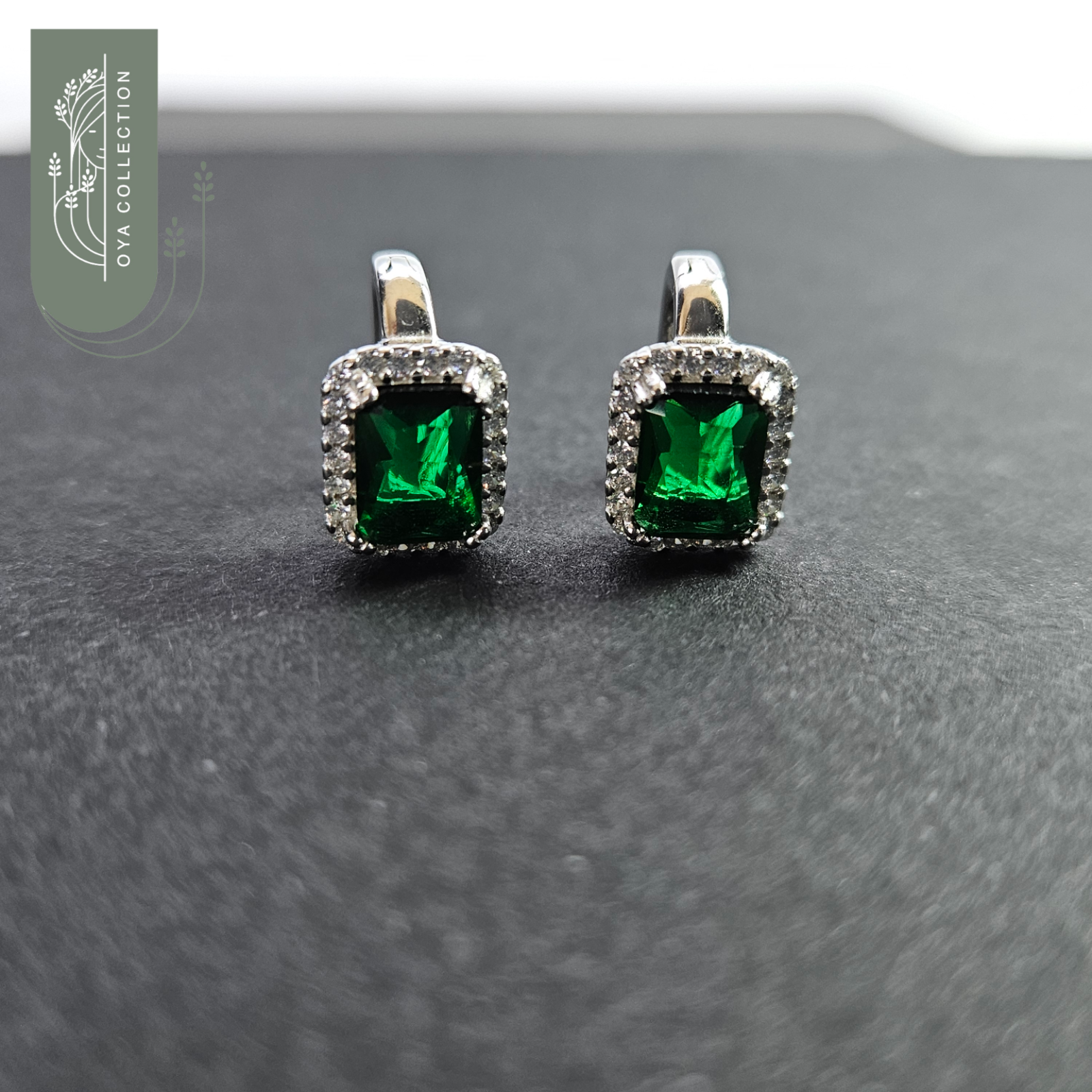 Green Garnet with Zirconia frame Earrings - Silver 925